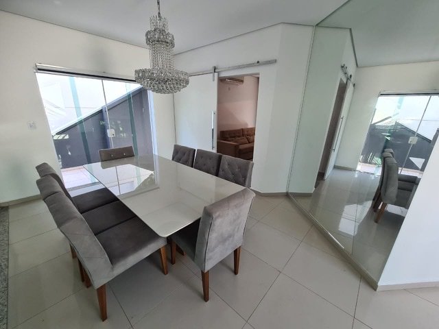 sala de jantar, com lustre central, sala de TV, cozinha, despensa, lavanderia, banheiro