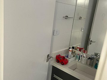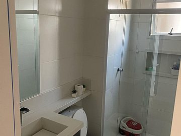 Já está com piso e com box nos banheiros, armários na cozinha e gabinetes nos banheiros.